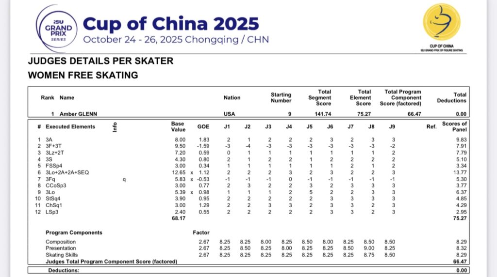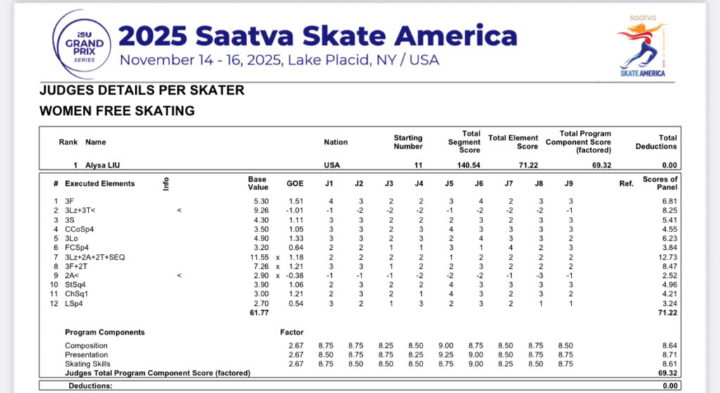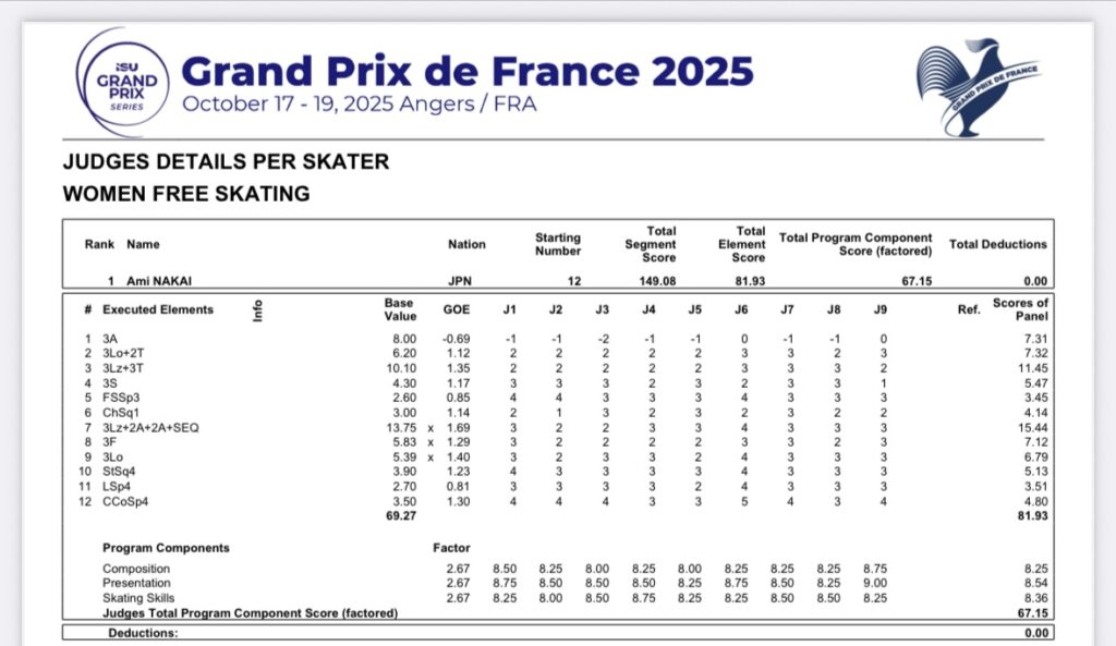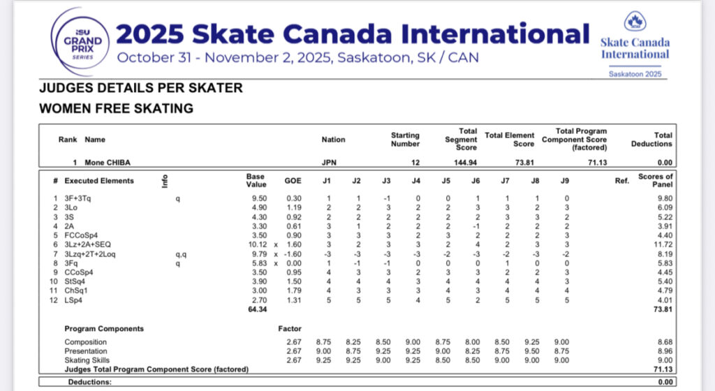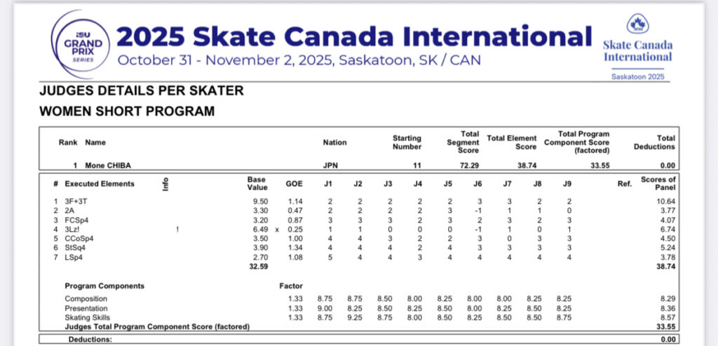 つまり、GOEとPCSが異様に高く付いているってことなんですけど、はっきり言って、ここまで他の選手たちと差が開くほどのスキルの差は無いと思うんですけどね😑