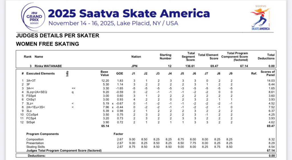 スケートアメリカで、渡辺選手の演技にこれでもかと低い点を付けた日本のジャッジからも分かるように、各国連盟の推し選手かそうでないかで、あからさまな点数の乖離が生じているわけなんですよ🫢